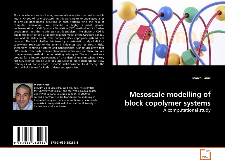 M. Pinna “Mesoscale modelling of block copolymer systems: a computational study”, VDM Verlag Dr. Müller, Saarbrücken (2010).