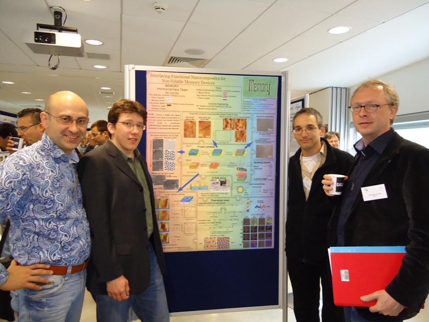 From right to left: Agur Sevink (Holland), Roy Shenhar (Israel), Clemens Liedel (Germany) and Andrei Zvelindovsky (UK) present MEMORY project poster