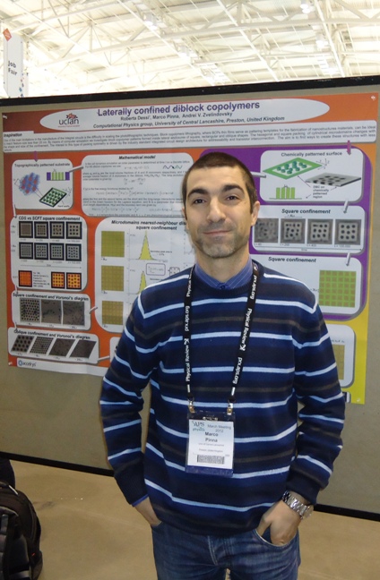 Marco Pinna presented a poster “Laterally confined diblock copolymers” and Andrei presented a poster “Transformation kinetics of BCC sphere morphology of diblock copolymer under electric field”.