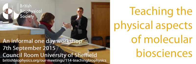 On Monday 7th of September 2015 took place the workshop “Teaching the Physical Aspects of the Molecular Biosciences” at the initiative of the British Biophysical Society (BBS). The workshop was hosted by the University of Sheffield. The aim of the workshop was principally to assess what was missing in the current physics education of students in biology and how to make physical concepts more accessible to an audience of biologists/biochemists. The topics discussed ranged from the importance (or not) of mathematics, priority (or not) of concepts over technical details, the role of order of magnitudes and estimation, the importance of units and (although it was never mentioned for the sake of common understanding) the role of dimensional analysis in biophysics. From a more experimental side, the importance of curve fitting in data analysis and the difficult question of balancing content quality and quantity when teaching physics-based experimental techniques were also addressed in depth. Fabien was there to participate to these interesting discussions.