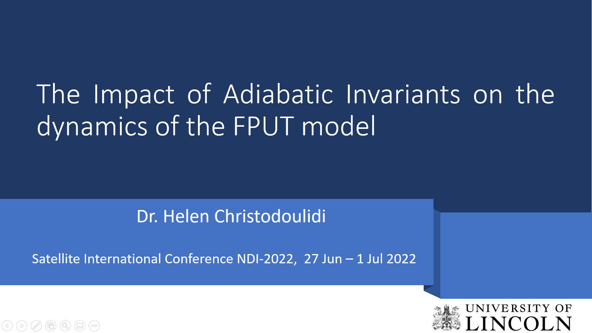 On Thur. 30th June 2022 Dr. Helen Christodoulidi gave a plenary talk on the ergodicity properties of the Fermi-Pasta-Ulam Tsingou model at the Satellite International Conference NDI-2022: Nonlinear Dynamics & Integrability, in Yaroslavl, Russia.