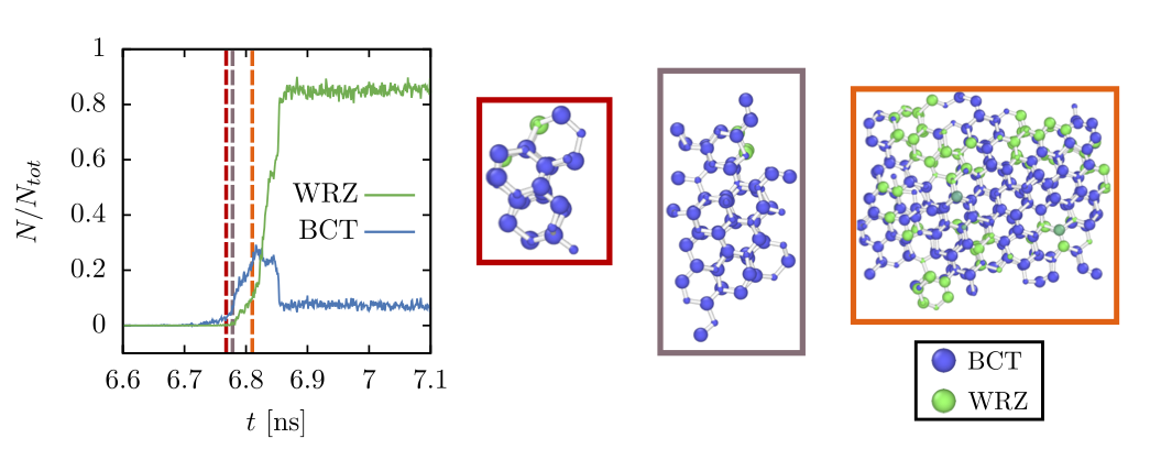 While crystals in material science are ubiquitous, the mechanisms of their formation which spans from nucleation to crystal growth remain one of the most intriguing process in nature. Better understanding crystallization would allow for a rational control of material engineering and possibly the development of novel functional materials and technological applications. From the fundamental point of view, numerous works have been dedicated to elucidating the emergence of the nucleation core and its role in controlling the final crystal structure. For instance, it is now possible to observe the crystal birth with electron microscopy, and colloidal science has also provided numerous experimental results on nucleation. Yet, while numerical simulations should have been a pivotal instrument to investigate crystallization at the atomistic level, studying nucleation require large scale simulations in order to observe the phase transition. As such, most works based on simulations have only focused on simple model materials thus preventing from targeting specific technological applications.